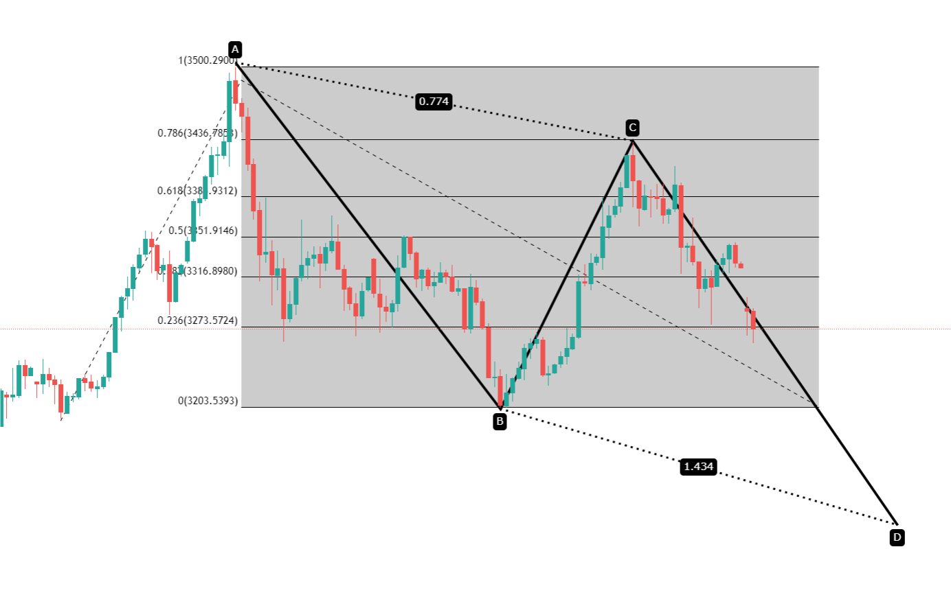 3436,就是基于3500点下的次高,我想的非常简单,不想那么复杂,既然你第一段3500能跌个300美金下去,那这次同样我看个3100对等跌幅也算是合理,这样的话整个下跌ABCD形态就会完成,至于以后是再反复调整,还是就此脱离下去暴跌,那是后话,现在聊太多没用,如果能把眼前CD的交易完成,那最起码还是能翻仓位3倍不止的,我说的是我,你们的话自行把握短线即可,不需要关心太多,今天就3330到位回撤10美金看跌呗,20美金出局,没啥说法。
