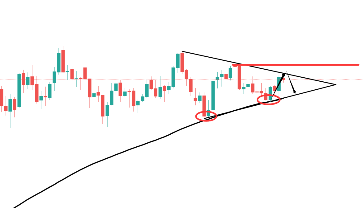 可以知道,黄金日线周期来看,尾部是个不折不扣的子弹头,标准化来讲叫做内敛三角形,高点下移,低点上移,而且每次低点都是在回踩100日均线,目前黄金已经出现了四点两线,四点就是指已知的高低点,两线就是上下趋势线,这样就能自然得出本轮的预期上涨高点就在3385附近,所以,这里要去做一次看跌尝试,尽管我也知道行情不可能立马第二天就转弱,但再次新高后,我还是要按照计划去做交易。