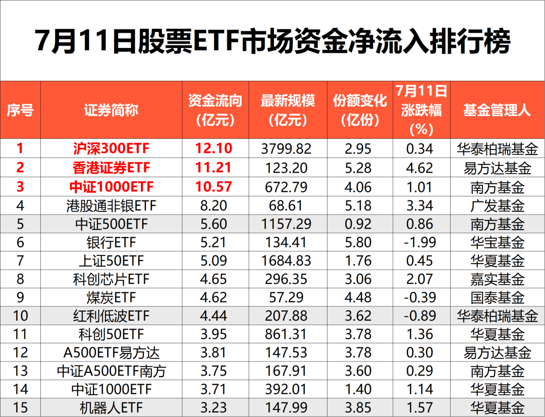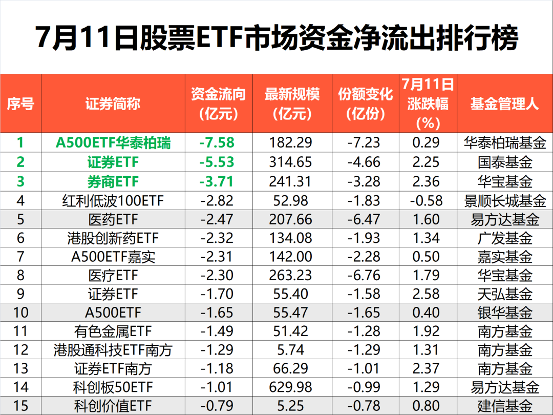 抄底!7月11日股票ETF市场净流入资金近68亿元